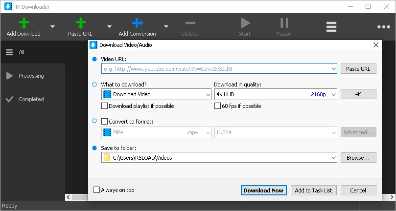 Features: Download videos in 4K format.