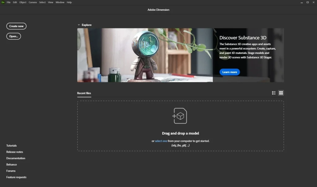 Adobe Dimension offers a straightforward, user-friendly interface that is remarkably similar to those of other Adobe applications, such as Photoshop and Illustrator. This makes it available to users who are already acquainted with the Adobe design ecosystem. Users can easily place models, materials, and lights into the environment by dragging and dropping them.