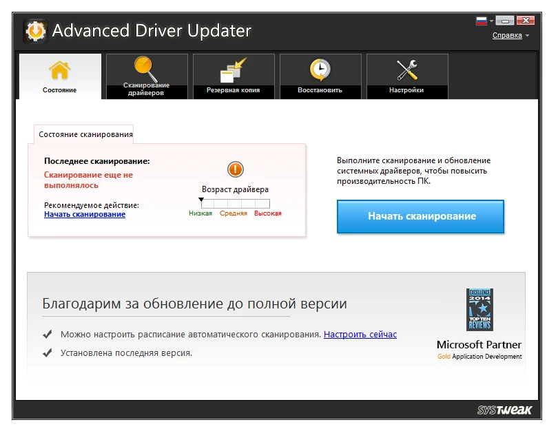 After installation, the application immediately starts scanning your system and displays the results when it finishes. You’ll see which drivers are up to date and which, according to the application, require updating. Everything is the same as in similar programs.