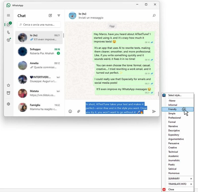 The application works fine: select the text, then press CTRL+C+INSERT. Choose a mode such as Style, Summaries, or Translation. The application works practically anywhere, including Word, Telegram, and the web browser. It is suitable for individuals who write essays, posts, letters, and articles.