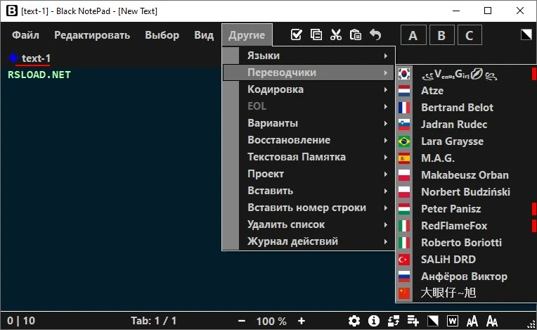 Five default color themes are provided. However, you can design your own color schemes for the background and font color. The author put a lot of care and effort into this, and he did an excellent job; I even wanted to start working on it. I recommend it to anyone searching for something new or as an alternative to the conventional notepad, especially now that Russian support is available.