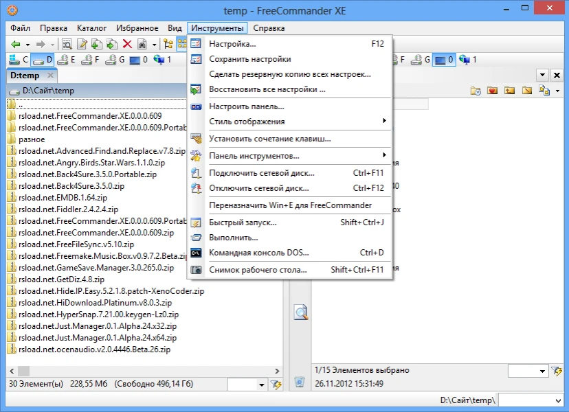 I want to introduce you to a decent file manager with an interface that is clearly reminiscent of Norton Commander. Its features include plugin support, the ability to work with files with long names, the ability to assign a custom color to a file format, a built-in CD player, a competent calculator and text editor, and the ability to display pictures and video in a variety of formats. The download link for FreeCommander XE is provided below. Please keep in mind that I have not included all of the benefits; it’s also worth noting support for viewing HTML sites, the ability to follow links, syntax highlighting, and other features.
