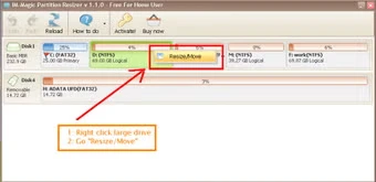 - Non-Destructive Resizing: Move or resize partitions using just available free space, ensuring that your existing files and folders remain intact.