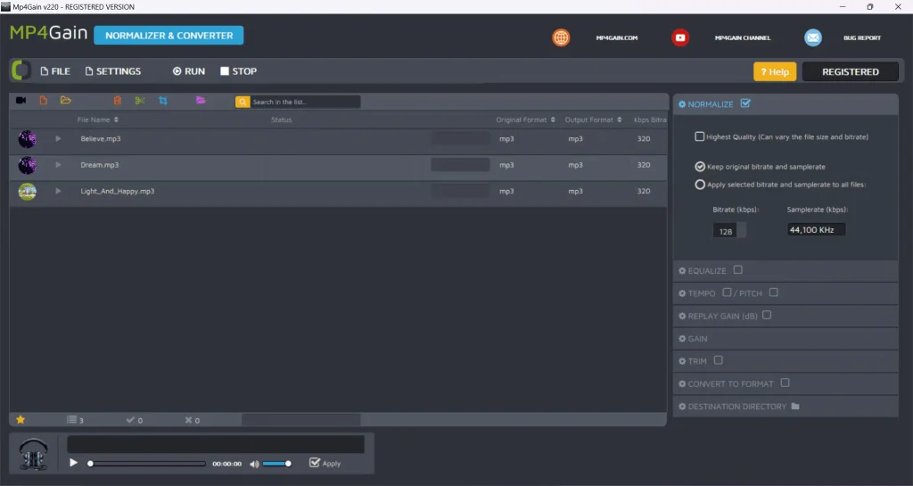 - Mp4Gain (previously Mp3Gain PRO) is an application that can optimise and balance the loudness of audio and video files in various file formats by analysing each frequency band and frame using complicated algorithms. Make careful adjustments to reach the perfect volume. This allows you to set the sound to a constant volume and create the component. The lightness of the song or film is heard more clearly while not distorting the loud elements.