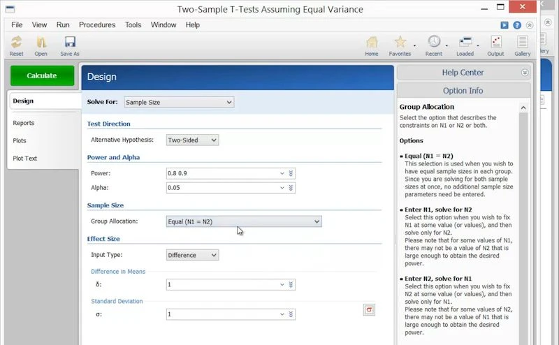 - The application provides an unrivalled library of sample size computations for a variety of statistical tests and confidence intervals. Whether you need to calculate the best sample size for hypothesis testing, correlation analysis, survival research, or other statistical scenarios, the software can help.