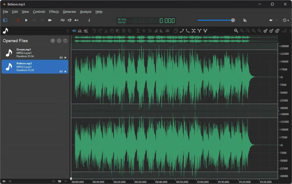 OcenAudio is an audio editor designed to be easy to use but powerful, with a variety of features and complete functionality. This program is suitable for new users and those with experience in audio editing. Whether it’s simple or detailed sound editing, it supports working with various audio files such as MP3, WAV, and FLAC. It can also add sound effects and VST plugins, making it possible to quickly and conveniently create high-quality audio output.
