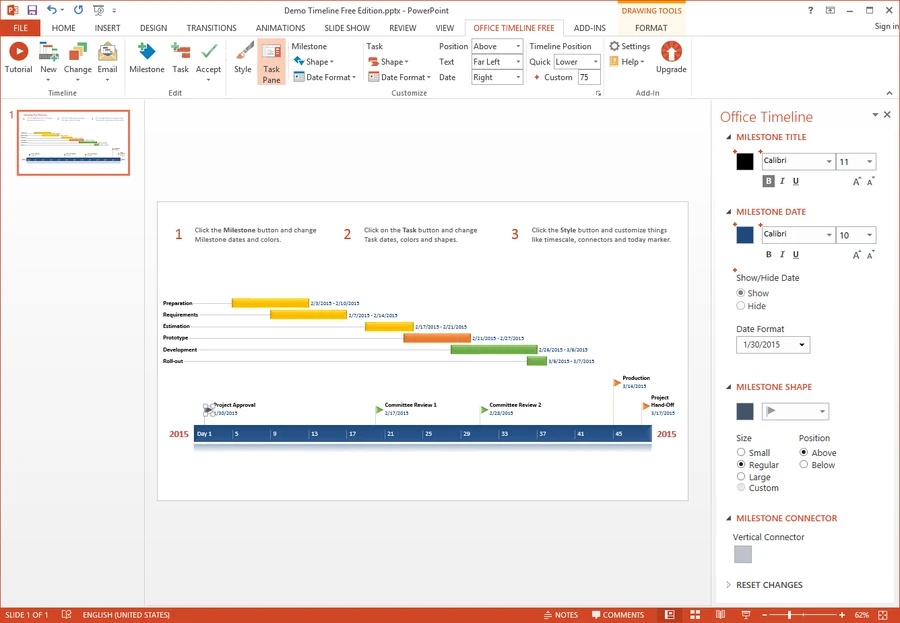 Office Timeline is a PowerPoint add-in that allows you to quickly and easily create a gorgeous timeline. If you’ve been seeking a tool to design and generate simple-to-integrate timelines, this is it. Before