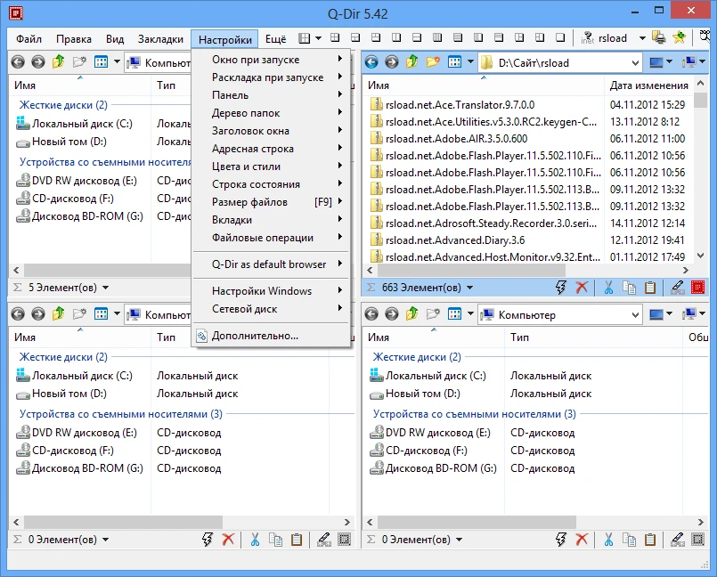 I like the Q-Dir principle. Of course, it takes some getting accustomed to, but the most critical aspect is the desire. The manager supports a variety of archive formats, and you do not need to install third-party software to unpack them. Furthermore, you may easily add or transfer a file or folder from one window to another by dragging it with your mouse. Essentially, it is a simple drag-and-drop feature.