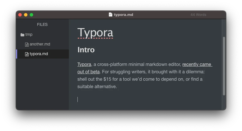 Typora provides a seamless experience for both reading and writing. It removes the preview window, mode switcher, markdown source code syntax symbols, and other unnecessary distractions, replacing them with a real-time preview that lets you focus on the material itself.