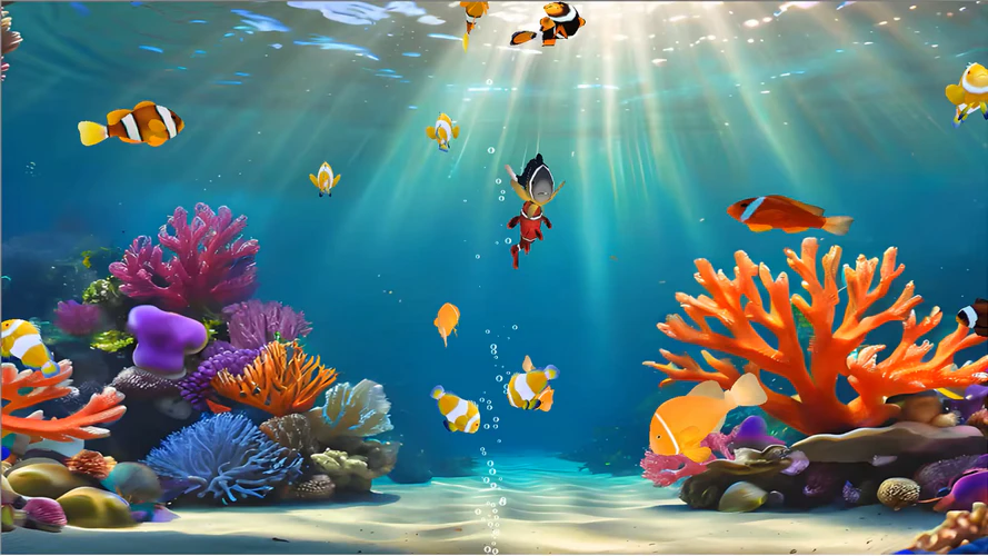 - 25 Clownfish Species: Watch a broad selection of wonderfully drawn clownfish swim freely through intricate coral reef habitats.