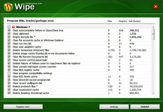 - Clear traces across hundreds of other applications: Wipe Pro will also remove traces, evidence, and rubbish files from many programs installed on your computer.